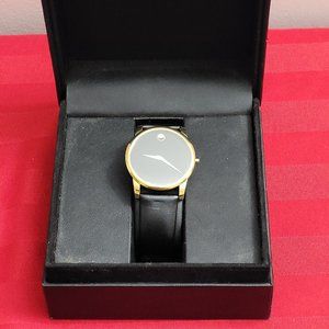 GENTLY USED, 2012 MOVADO BLACK AND GOLD EDITON WRIST WATCH!!!