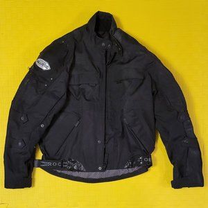 Joe Rocket Ballistic series Motorcycle Jacket. Only flaw is the faux leather detail is pealing. There is no damage, never had an accident. Men's size XL, measurements shown are as close as possible.