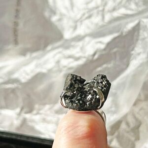 GEODE RING, GENUINE BLACK AGATE, REAL GEM CHUNK REALLY SPARKLES, WITH SILVER-TONE SHANK, ADJUSTABLE, TAG ON, NEVER WORN
