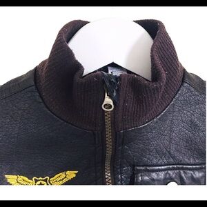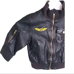 GEORGE Aviator Vegan/Faux Leather Jacket With Zipper Front & Pocket Brown Boy 2Y