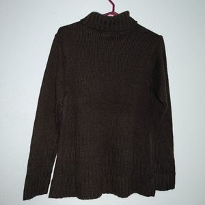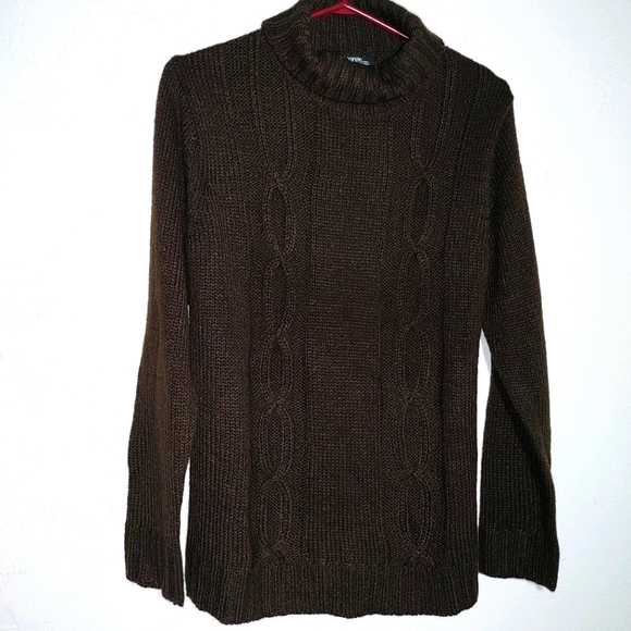 George Classic ladies turtleneck sweater. Size Large. Rich chocolate brown. Cable knot front. Plain back. Excellent condition.