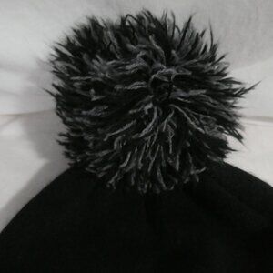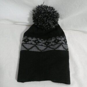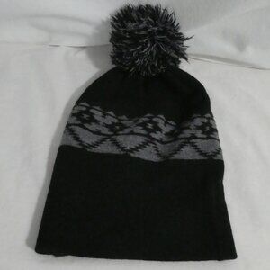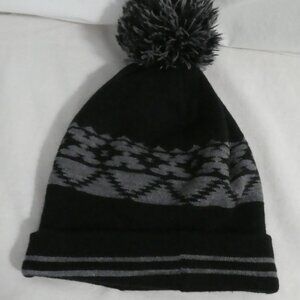 GEORGE | Knitted Black Winter Beanie / Toque With Pom Pom | Grey Stripe / Design