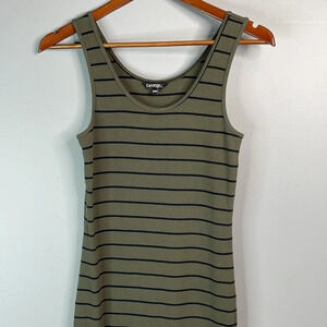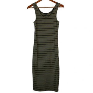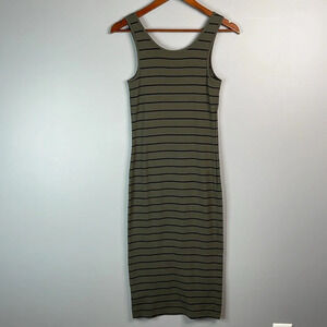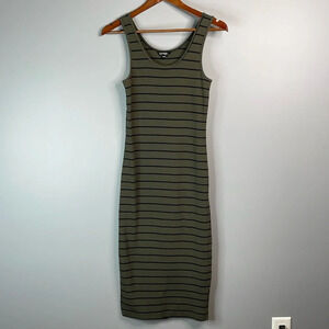 GEORGE Olive Green Ribbed Bodycon Midi Tank Dress Striped Stretch Size M