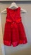 Charming sleeveless dress in vibrant red and pink. Features a decorative bow at the waist.