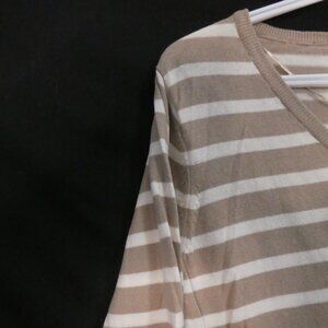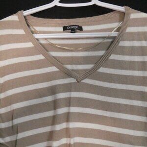 GEORGE | medium | Beige and White Striped V-Neck Lightweight Sweater