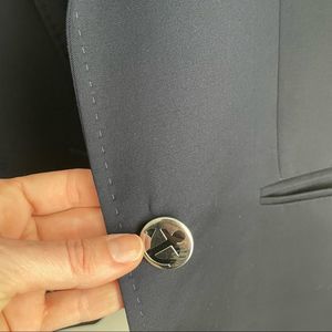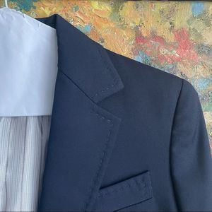 Navy blue wool blazer by George Rech.