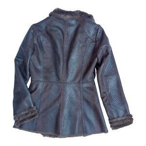 G.E.T Equipment General Technique Faux Fur Jacket. Features textured faux letter with fur lining and collar accent. Color is a deep chocolate brown. Perfect for fall! Size XS, excellent used condition.