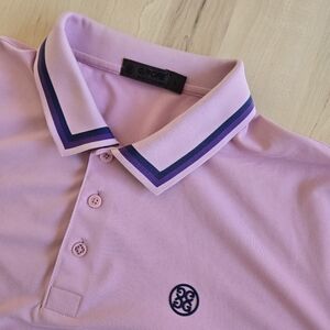 Like new! Light pink polo with dark purple trim. Features G/FORE logo.