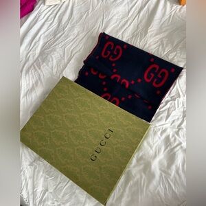 Stay warm and stylish with the Gucci GG Cashmere Lamé Jacquard Double Sided Scarf. This luxurious unisex scarf features a bold red color with the iconic Gucci logo woven throughout. Made from soft cashmere, this scarf is perfect for adding a touch of sophistication to any outfit. Whether you're dressing up a casual look or adding a pop of color to a formal ensemble, this Gucci scarf is a must-have accessory for any fashion-forward individual.