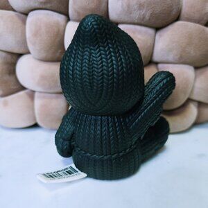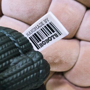 Friendly robots designed this figure to look like knit fabric at a glance, but it’s actually made of vinyl. Signature vinyl tag on the figure, complete with barcode decal to resemble a sewn-in label.