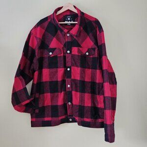 GIAD Shirt Mens XXL Plaid Red Black Flannel LS Snap Buttons God Is A Designer
