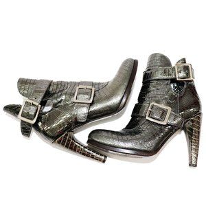 GIANNI BARBATO Snakeskin Effect Ankle Gun Metal Ankle BOOTS 37