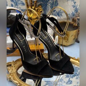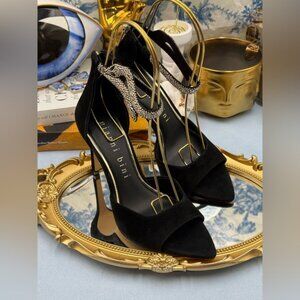 🆕 GIANNI BINI 🧿 NWOB August Embellished Snake Sandals, Black Suede - Sz US 7 M