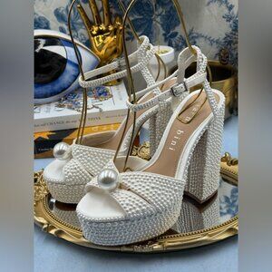🆕 GIANNI BINI 🧿 NWOB KemaraTwo Embellished Pearl Studded Platform Sandal Sz 7
