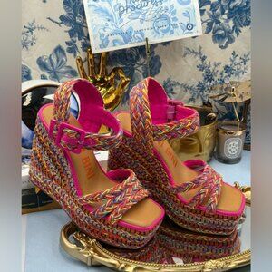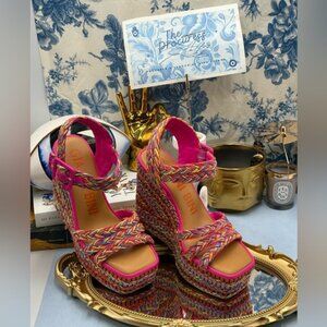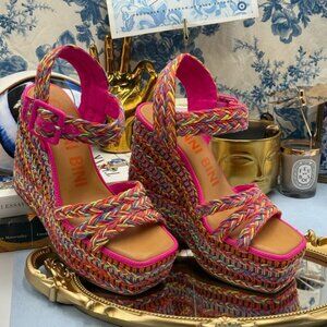 🆕 GIANNI BINI 🧿 NWOB Santi Woven Beaded Wedge Sandals - Rainbow Multi, Sz US 7