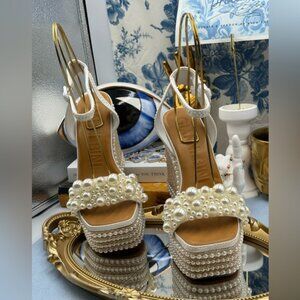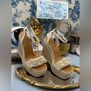 🆕 GIANNI BINI 🧿 NWOB Savanna Pearl Ornamented Platform Wedge Sandals, Sz 6.5