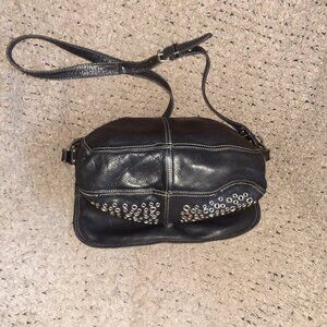 GIANNI CHIARINI-Black Leather Fold Over-Grommets/Studs-XBody/Shoulder-Excellent