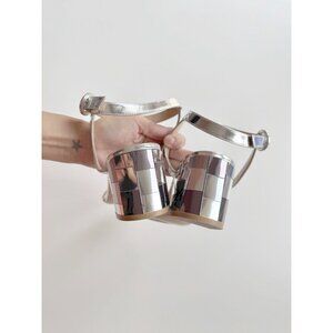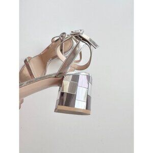 GIANVITO ROSSI Silver Leather Mirrored Block Heel Wraparound Sandals, Size 40