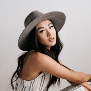GIGI PIP Scottie Wide Brim Fedora Hat Gray Australian Wool Felt S/M (57)