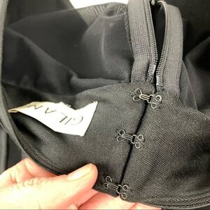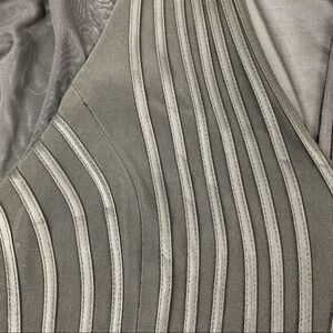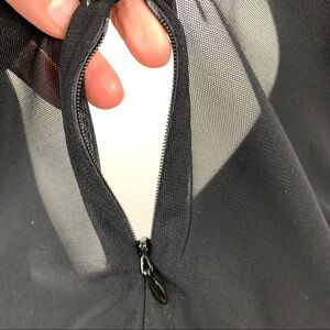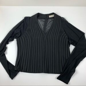 The perfect holiday top. Black opaque bodice with lots of stretch, has a detailed ribbing almost like a boning and the sheer arms and back. Stunning with a pair of dark trousers or a beautiful holiday skirt. So many possibilities with this piece.