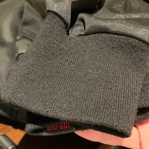 In good pre owned condition, Gio-Goi Manchester Fashion modern sporty black fleece full zip sweater jacket. Nice contrasting nylon band. Stretchy Jersey knit band on collar, wrist and hem *(tiny peeling see last pictures). Size zippered pocket. On Last picture, missing superficial seam on the back arm but no holes.