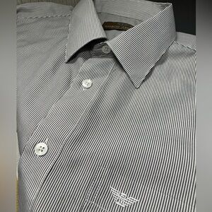 GIORGIO ARMANI Menโs Short Sleeve Button down Stripe Shirt, White/Black, L/XL
