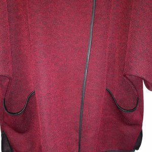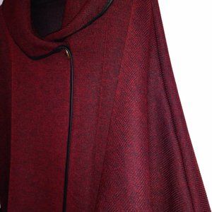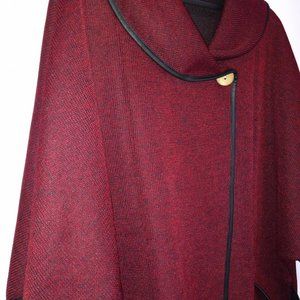 GIRASOLE - Cape, one size but easily fits large to 1X, wine colour with black trim, very light weight, 2 pockets, excellent condition, 2 openings for hands, nice shape!
