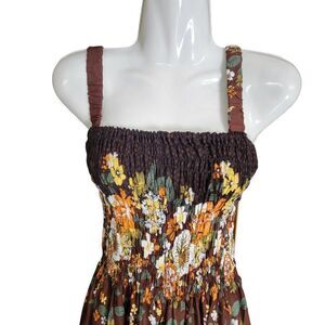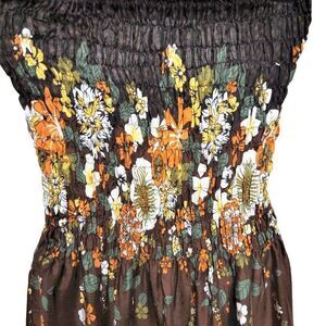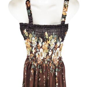 GIRLS Brown Floral Print Rayon Smocked Long Summer Dress