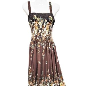 Beautiful flower printed Brown Rayon Dress