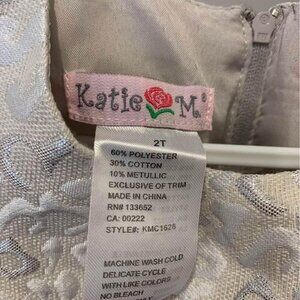 Girls “Katie M” dress! Size 2T. White/silver. Crinoline underneath. Bow tie back. Bow front with embellishment. High quality. Comfortable (not scratchy). Stunning dress for any formal occasion.