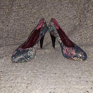 Beautiful shoes in a crackled colorful nubuck in a floral pattern.