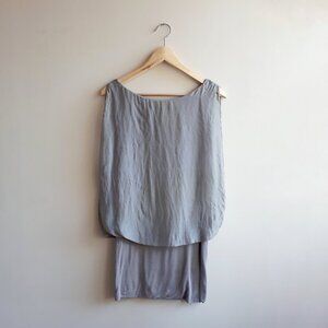 Delicate blouse from Italian brand Giusy with 100% silk (lining). Has a 1920's style low waist that wraps the hips in a tube with lots of stretch. The top part wears loose and flowy. Great for a sophisticated minimal look for day or evening. Made in Italy.