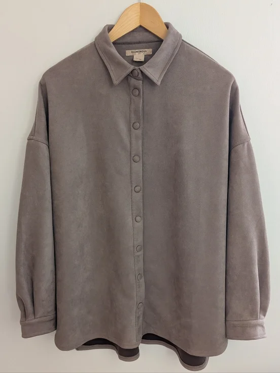 Glamorous button up mauve purple shirt jacket. The fabric is so soft and cozy. Great for a light jacket or cover up.