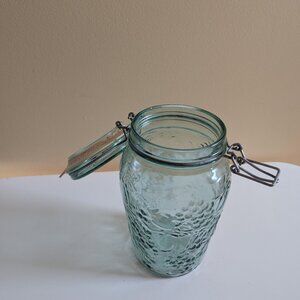 GLASS FRUIT EMBOSSED VINTAGE SNAP LID JAR