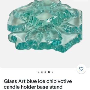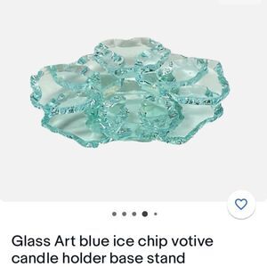 GLASS ART BLue Ice Chip Votive candle holder base stand