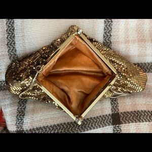 VINTAGE Glomesh Evening bag. Unique opening of the bag and lovely secure snap closure. The pic does not capture well the richness of the gold. In pristine condition.