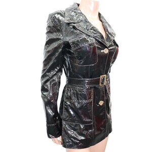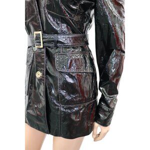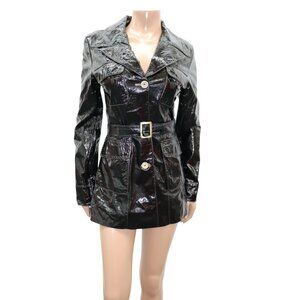 GLOSSY Couture Show STOPPING Black Patent Leather Belted Trench Coat S