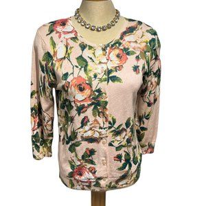GNW Floral Cardigan Size Large Button Down Pale Pink Very Pretty Rayon