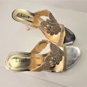 GOLD High Heels Crystal Embellished Heels Size 7 (size 38)