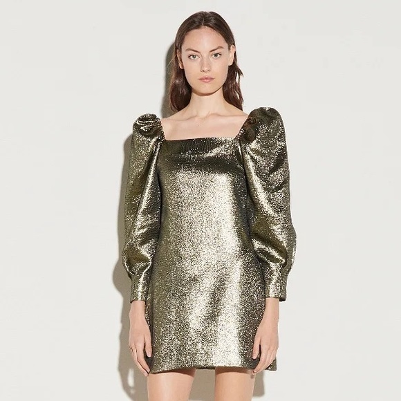 GOLD SANDRO SQUARE-NECK DRESS