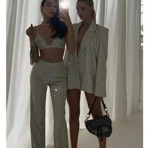 THE SLA SANTORINI TROUSERS ARE MADE FROM A LUXE HIGH SHINE GLITTER FABRIC. THE ULTIMATE STATEMENT TROUSER TO WOW ON A SPECIAL OCCASION.