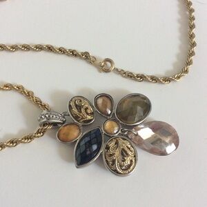 GOLD Tone Spiral Chain 24” with a Silver & Gold Pendant