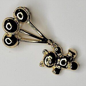 Lightweight Dangling Teddy Bear in a gold enamel tone with three floating balloons