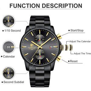 Sports chronograph: Multifunctional sub-dial can work, chronograph, calendar, run seconds. Provide you with multi-function purpose use.