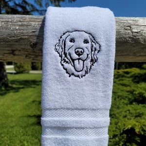 GOLDEN RETRIEVER hand towel - Embroidered GOLDEN RETRIEVER white bath towel.