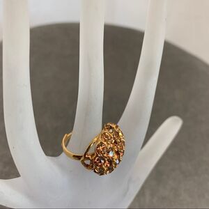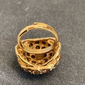 Goldtone bronze Crystal rhinestone clustered adjustable round ring