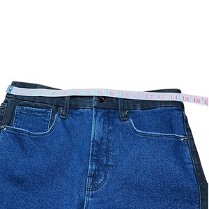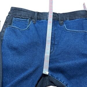 In like new condition. These have the look and feel of jeans that have never been worn or laundered. Dark denim wash in front and black (dark charcoal grey) wash in back for a very slimming effect. High rise. Photos are important so please check all for condition, detail and measurements.