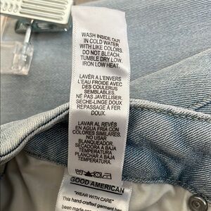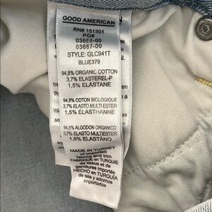 GOOD AMERICAN denim is of high quality from the design and fit, to the construction and details of the Jeans. I love the fit of these! They fit my curves perfectly and are very flattering on but I’m selling off my distressed denim. They have 11 inch rise which I love and skinny leg style with a nice light vintage wash and distressing just above the knee. Five pocket design with zipper and button closure. They are super stretchy too so they are super comfy on. Made from organic cotton. Excellent condition worn only a few times.