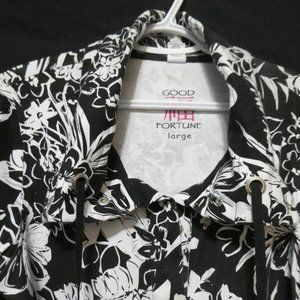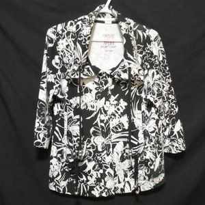 GOOD FORTUNE | large | Black and White Floral Snap Button-Up Jacket | NWOT