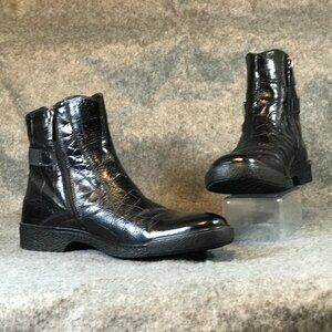 GOOD MAN Black Side-Zip Closure Plain Toe Non-Slip Fax Fur Insole Men's Ankle Bo
